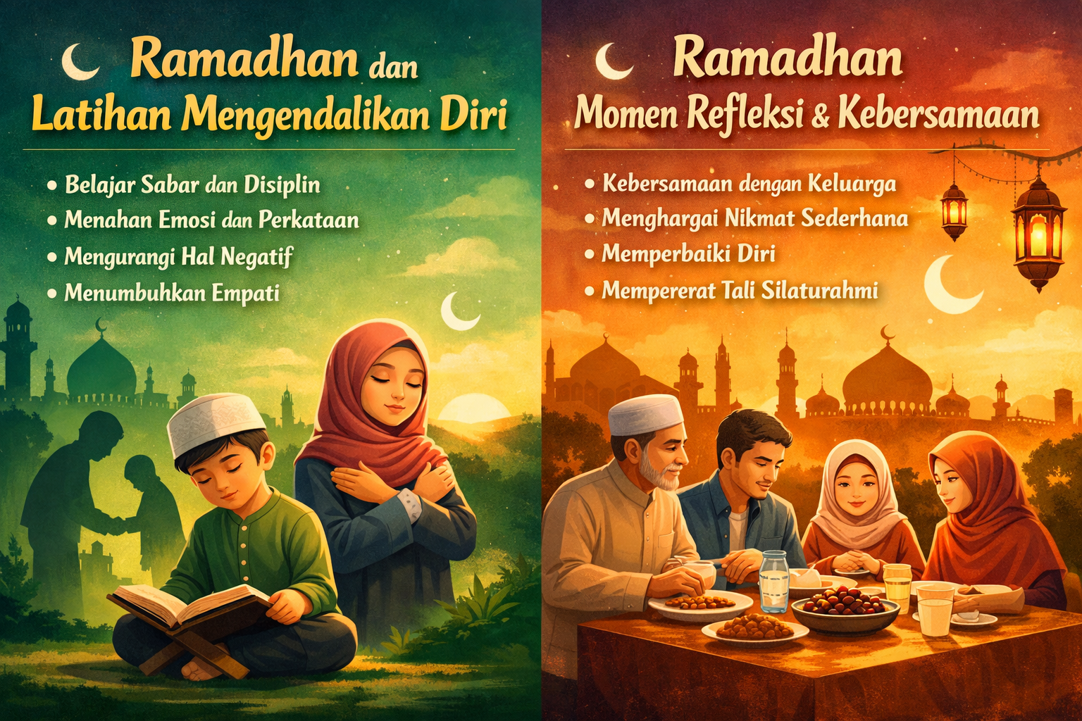 Selain itu, Ramadhan membentuk kebiasaan baik seperti bangun lebih pagi, memperbanyak ibadah, serta mengatur waktu dengan lebih terstruktur. Disiplin kecil yang dilakukan setiap hari dapat membangun karakter kuat dalam jangka panjang.